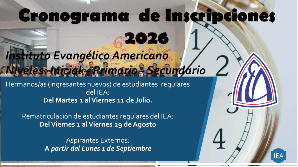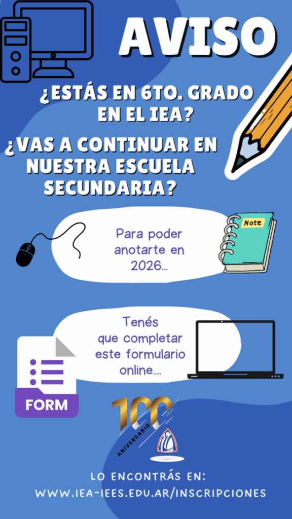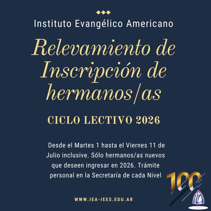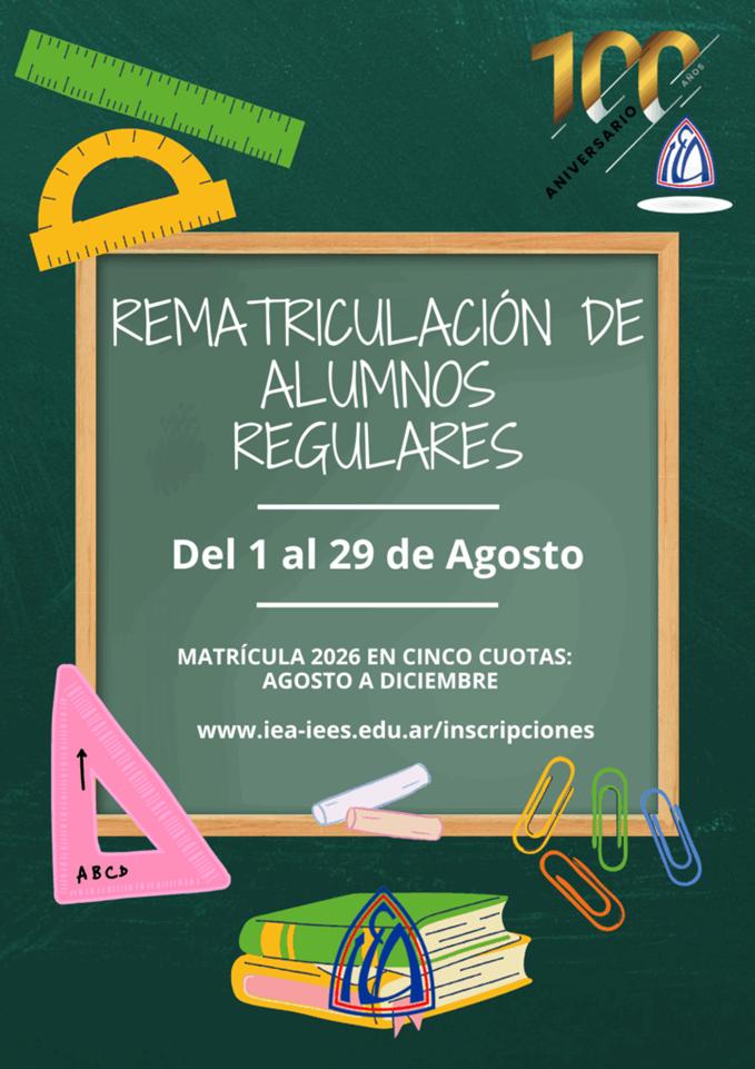 La Matrícula 2026, para los estudiantes del IEA, se podrá abonar en cinco cuotas: de Agosto a Diciembre. La Reserva de Vacante se abona en la escuela.