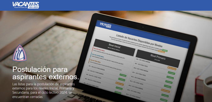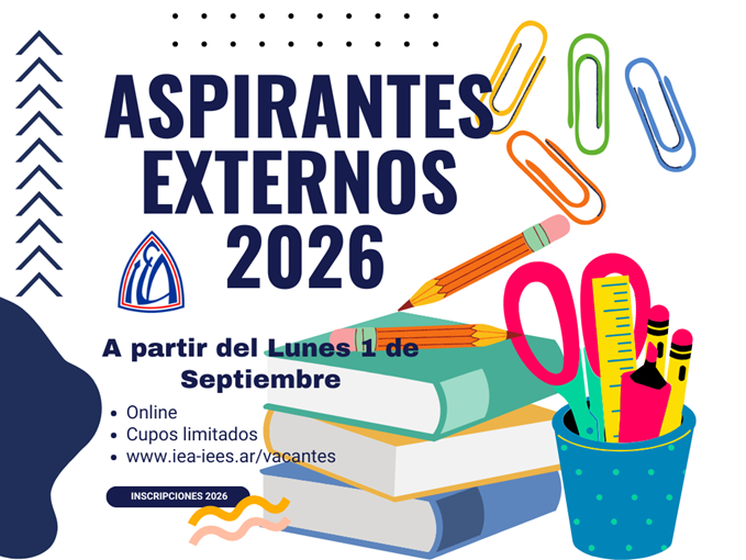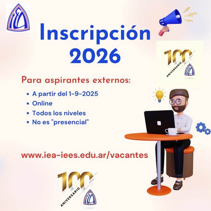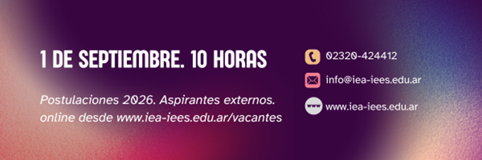 Aspirantes externos, a partir del Lunes 1-9-2025, exclusivamente online, accediendo a www.iea-iees.edu.ar/vacantes, procederán a completar el formulario de postulación.