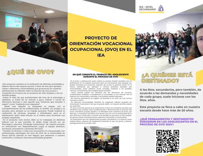 PROYECTO DE ORIENTACIÓN VOCACIONAL OCUPACIONAL (OVO) en el IEA, NIVEL SECUNDARIO