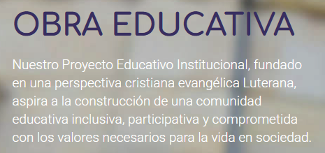 La Iglesia dentro del sistema educativo público de gestión privada ofrece a las familias una escuela cristiana de confesión luterana, que desde la perspectiva de la fe, expresa su identidad, su compromiso y su testimonio en el anuncio del Evangelio.