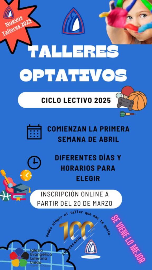 Inscripción online Talleres Optativos 2025, a partir del 19-3: