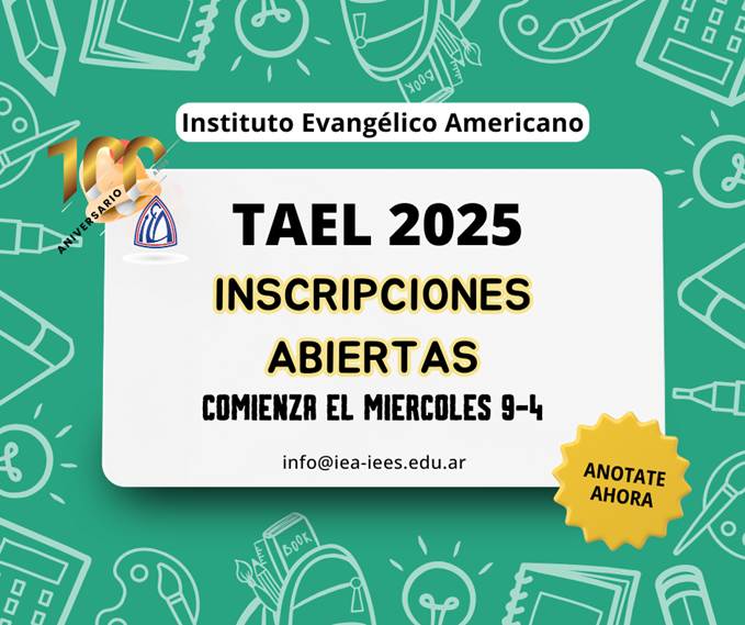 TAEL (Test of Applied English Language) es un proyecto del área de inglés que fue puesto en marcha en el año 2013 en la escuela. El objetivo principal del mismo es brindarles, a aquellos alumnos que lo deseen, la oportunidad de intensificar sus estudios en el área de inglés y poder certificar los mismos a través de una evaluación externa en el Instituto Cambridge de CABA.