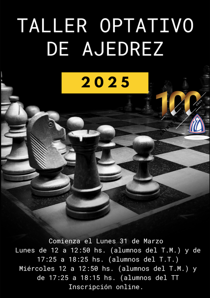 Se realizarán en contraturno, después de las 17:25 horas, a excepción del Taller de Ajedrez que se realiza entre turnos, al mediodía.